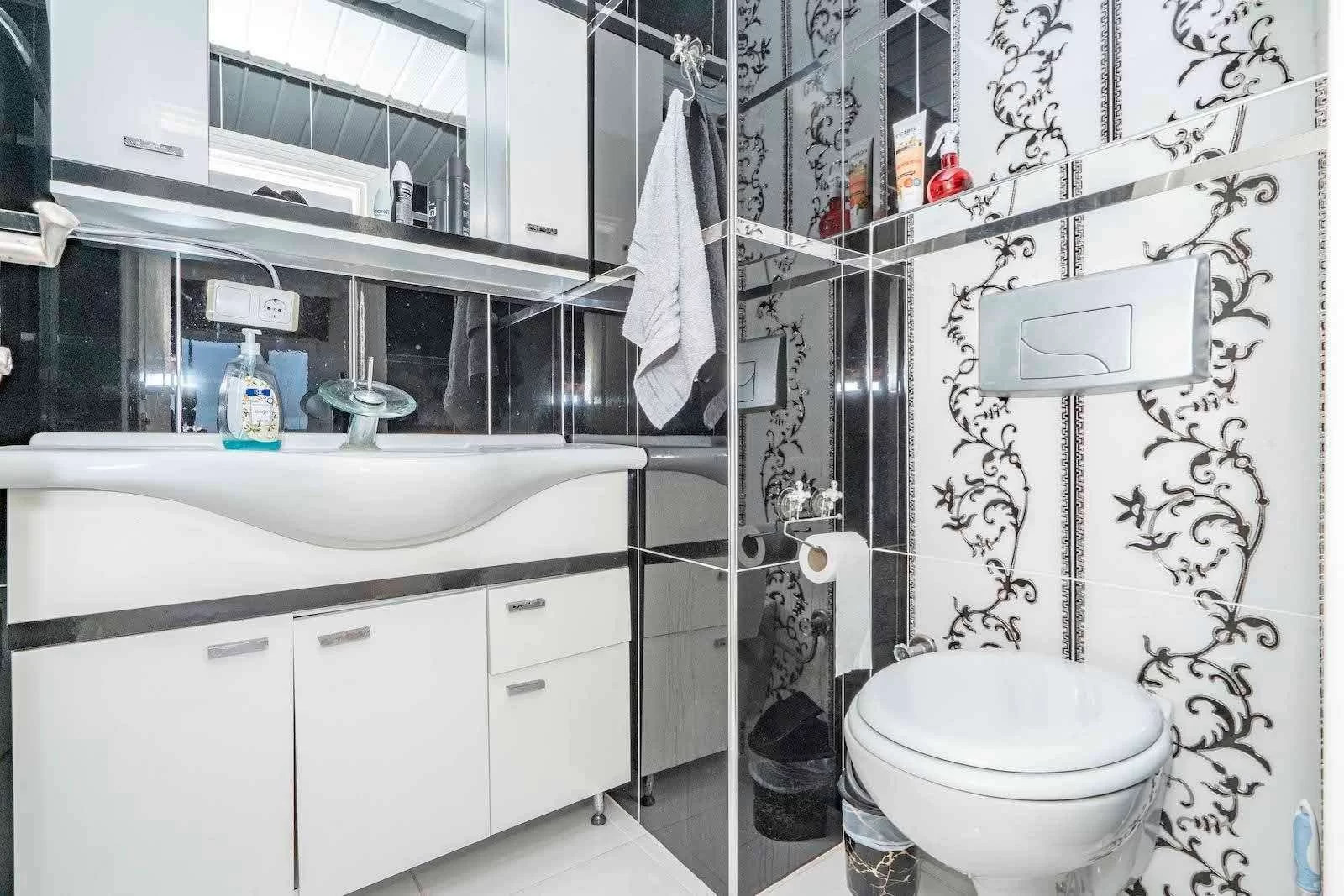1В районе Бекташ, с видом на крепость, море и город, сдается в аренду меблированная роскошная вилла площадью 120 м². Вилла площадью 100 м² имеет просторную гостиную, кухню, ванную комнату и туалет на нижнем этаже, а на верхнем этаже — 2 спальни с ванной комнатой, гардеробную и балкон, создавая современную жилую зону.