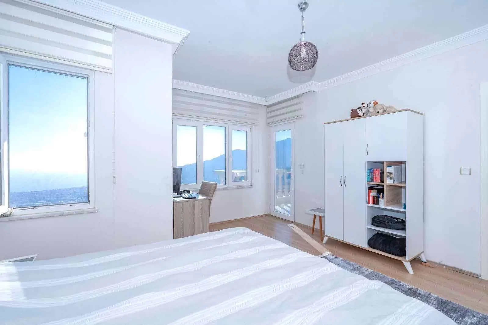 Вилла с четырьмя открытыми фасадами светлая и просторная в течение всего дня. Эта вилла с садом, обставленная современной и стильной мебелью, благодаря своему высокому расположению обеспечивает просторную атмосферу. Вы можете добраться до этой виллы, расположенной в 3 км от моря и центра города, через агентство Nazar Emlak.