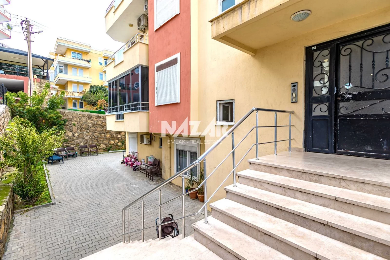 Квартира находится примерно в 750 метрах от моря, в шаговой доступности от торговых центров, кафе и ресторанов. Благодаря своему центральному расположению, она подходит как для повседневной жизни, так и для длительного проживания. Вы можете связаться с этой квартирой через Nazar Emlak.