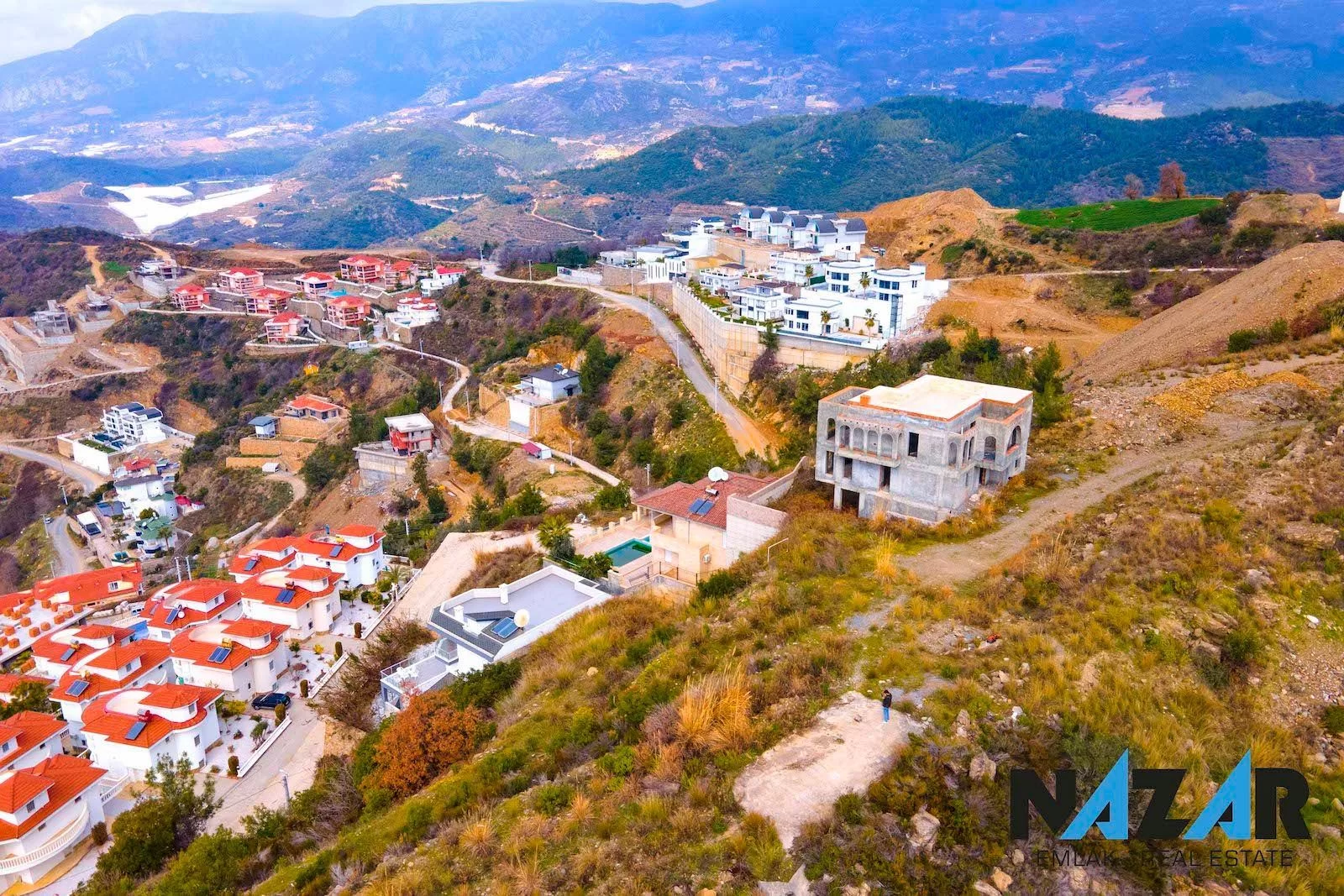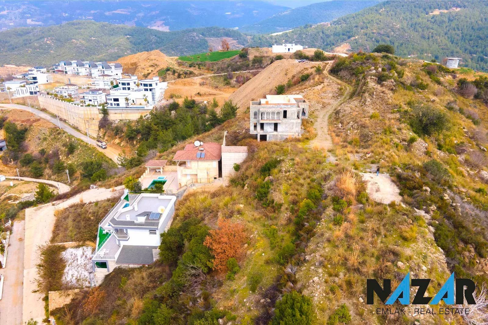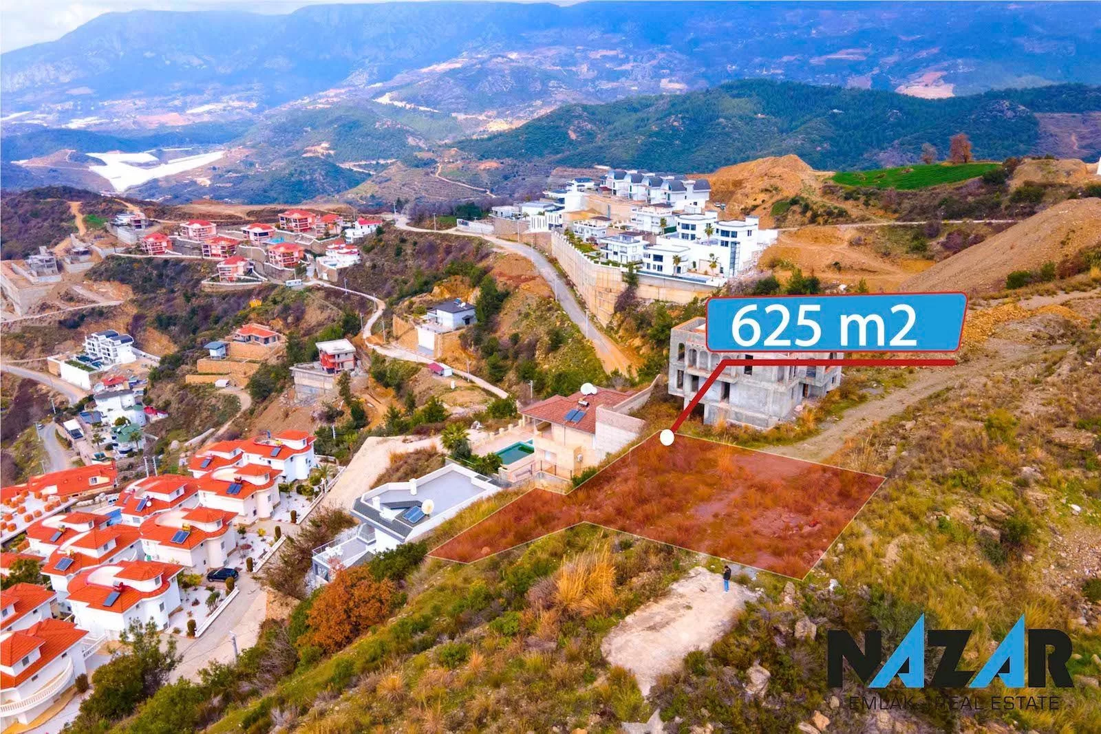 Участок выходит на дорогу, имеет вид на море, природу и город, находится в открытом месте и окружен жилыми районами. Вокруг расположены роскошные виллы, дорожная, водная и электрическая инфраструктура готова. Вы можете приобрести этот участок с разрешением на застройку, подходящий для кредита и обмена, через агентство Nazar Emlak.