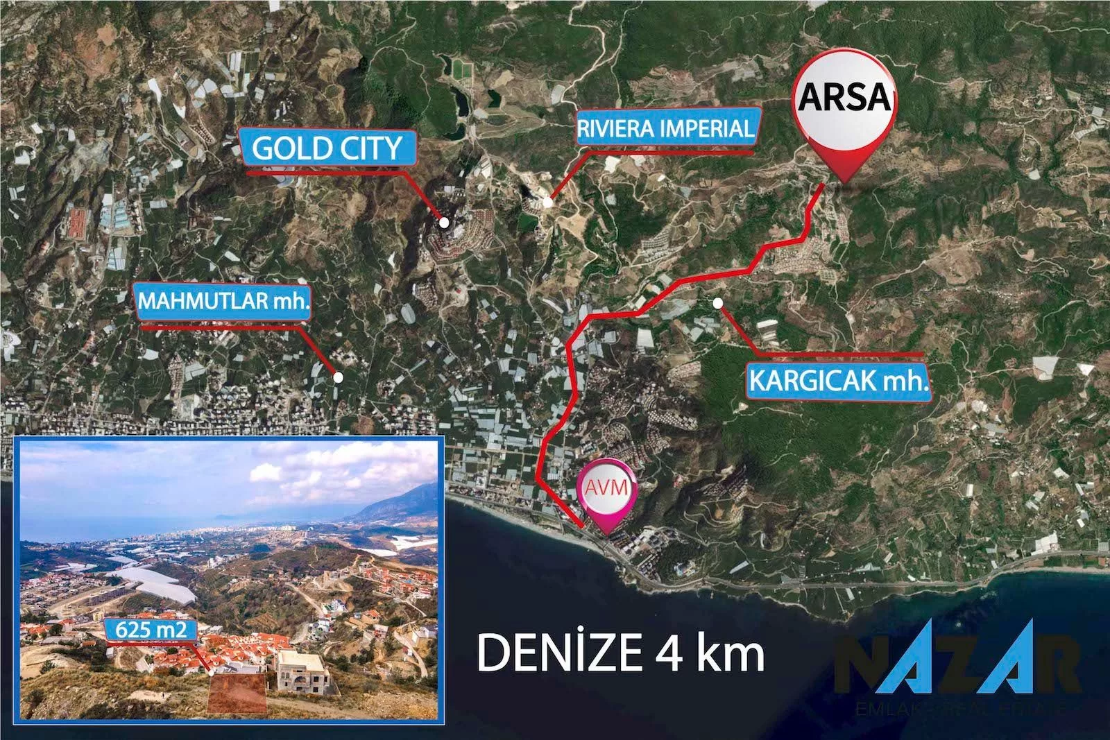 625 m2В одном из самых популярных районов Алании, Каргыджаке, в 4 км от моря, продается участок под застройку площадью 625 м². Участок зарегистрирован в кадастре под номером 129, участок 5. Участок имеет площадь 162 м² и разрешение на строительство общей площадью 406 м², что позволяет построить двухэтажную виллу с мансардой или отдельно стоящий дом.